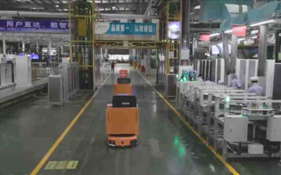 为车载冰箱物流配送打造的智能解决方案,,,包含产中物流通过潜伏举升AMR搬运至线边,,产后成品物流智能仓储,,流程包含产中物流智能齐套入库,,,,线边安灯叫料AMR智能配送至线边,,,,成品入库、、出库,,,通过无人堆高车机器人,,,,智能仓储管理替代人工作业管理,,实现更高存储、、、更高效率、、更具柔性化的解决方案。。。