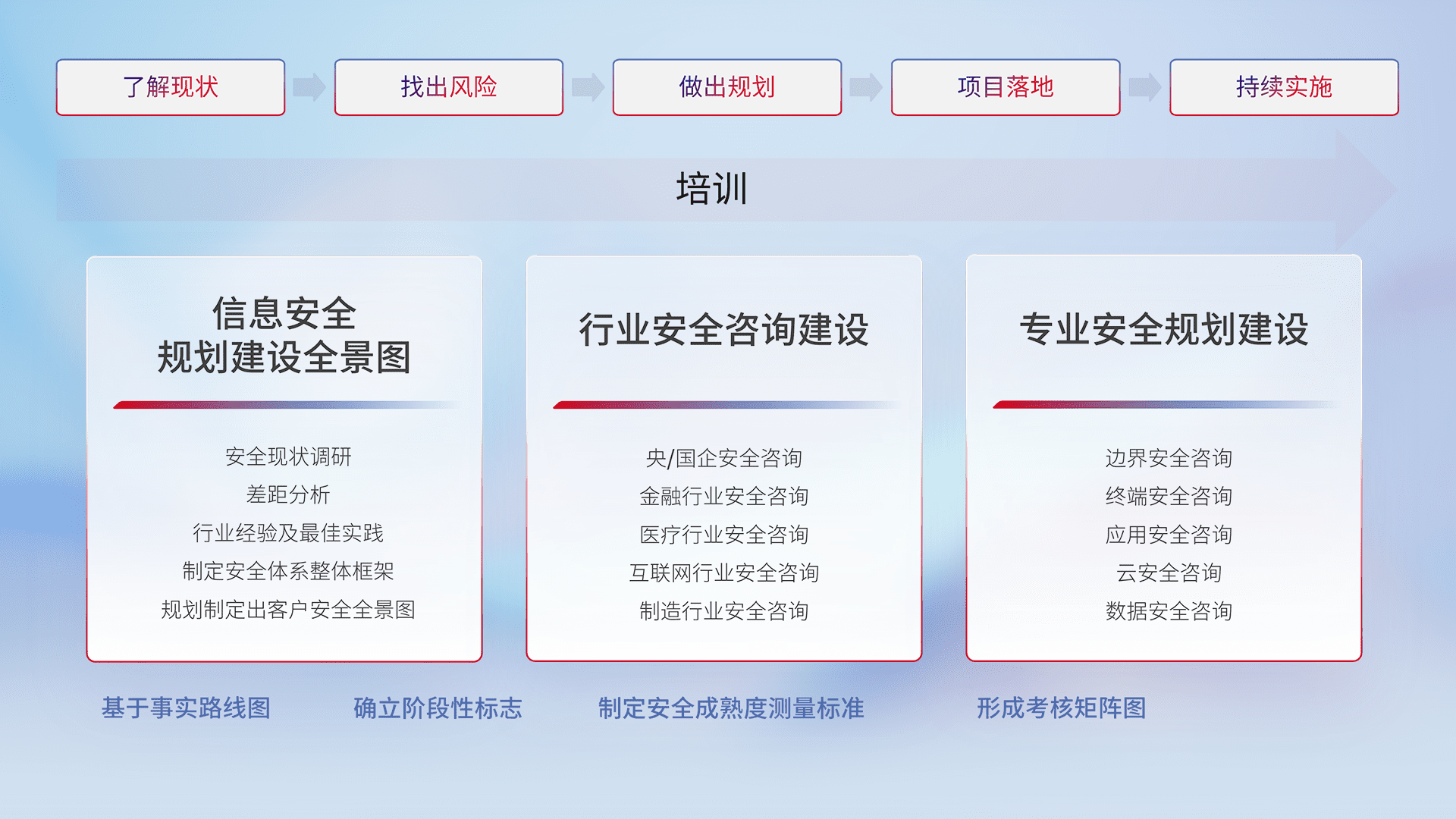梳理客户信息安全现状调研、、差距分析结果,,,,结合行业先进经验及最佳实践,,,制订客户的信息安全管控体系总结架构,,最终形成一个完整的客户信息安全规划与建设的全景图。。。